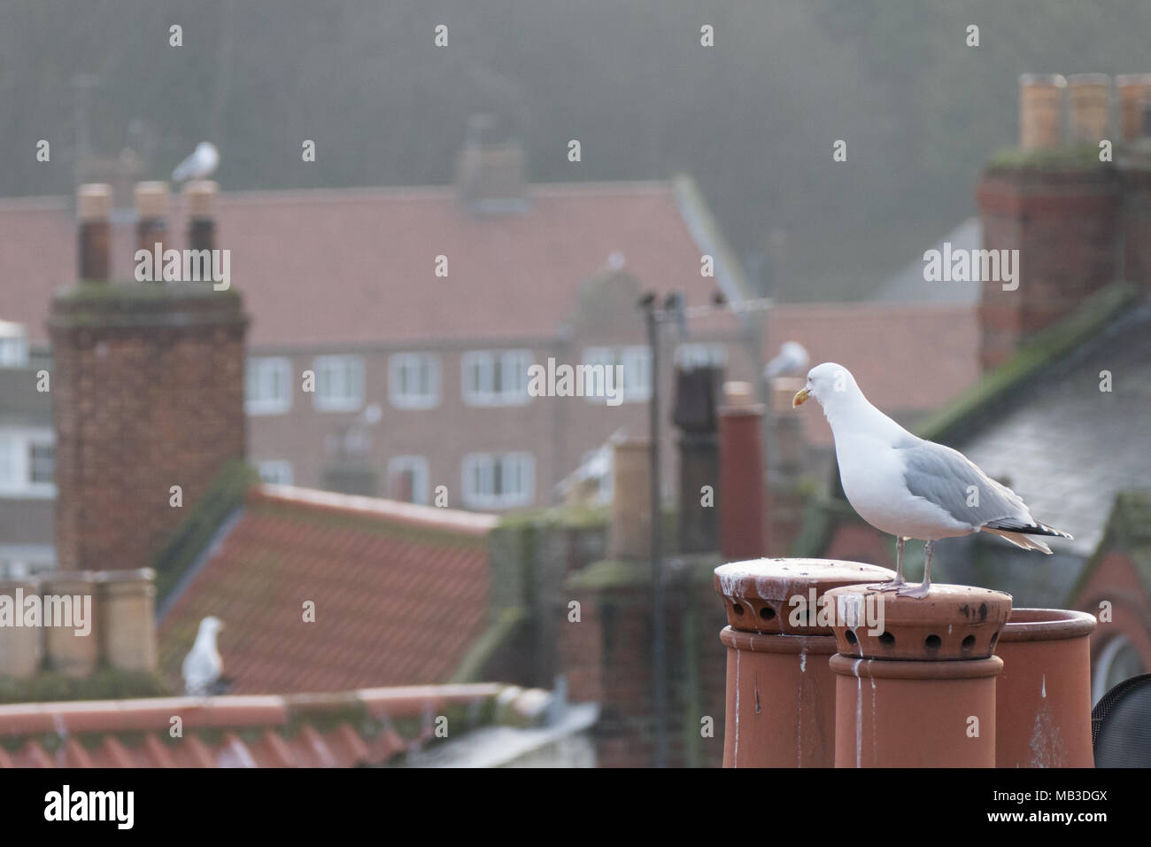 Gabbiani Vivente Tra I Camini E Tetti Di Inglese Del Mare Del Nord Del Porto Di Mare Resort Di Whitby Foto Stock Alamy