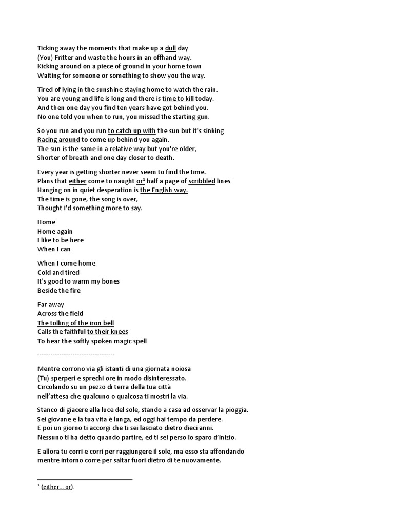 Traduzione Da Inglese Ad Italiano Pink Floyd Time Il Mondo Delle Mie Idee 4