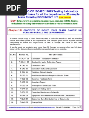 Iso Iec 17 Requirements List Of Documents Outline And Summary Calibration Awareness