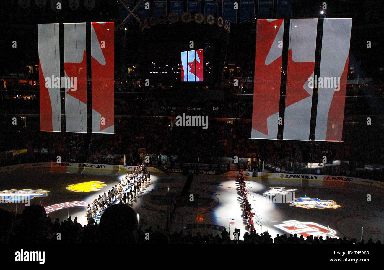 Canto Degli Inni Nazionali Ad Un Gioco Di Hokey Del Nhl Fotografia Editoriale Immagine Di Anthems Bandiera