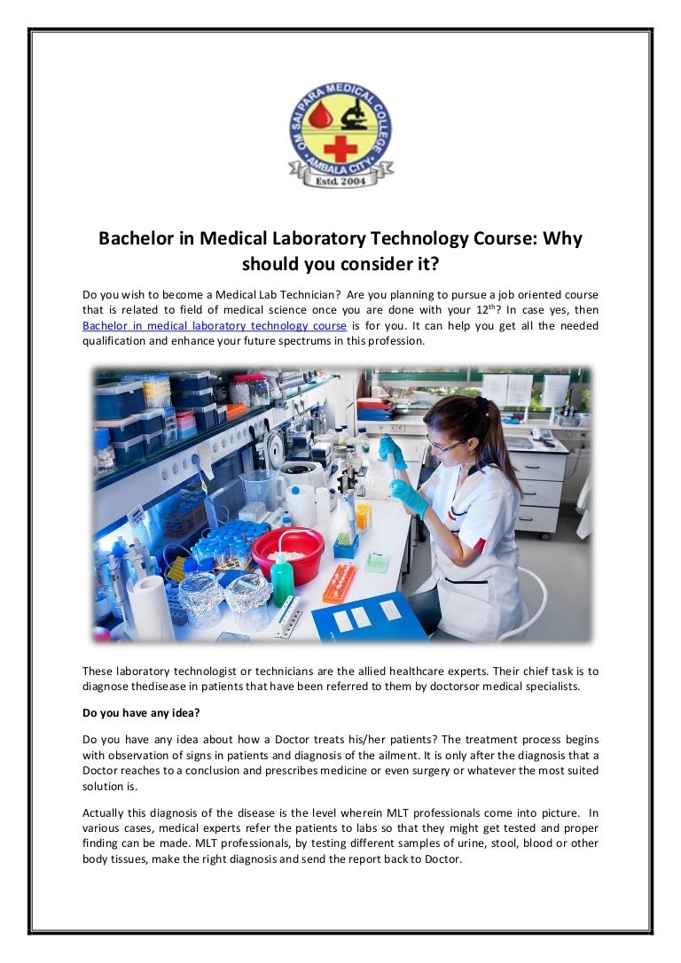 Bachelor In Medical Laboratory Technology Course Why Should You Consi