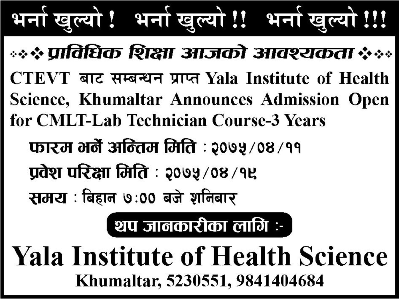 Education And Training Nepal Admission Open Cmlt Lab Technician Course 3 Years Admission Information