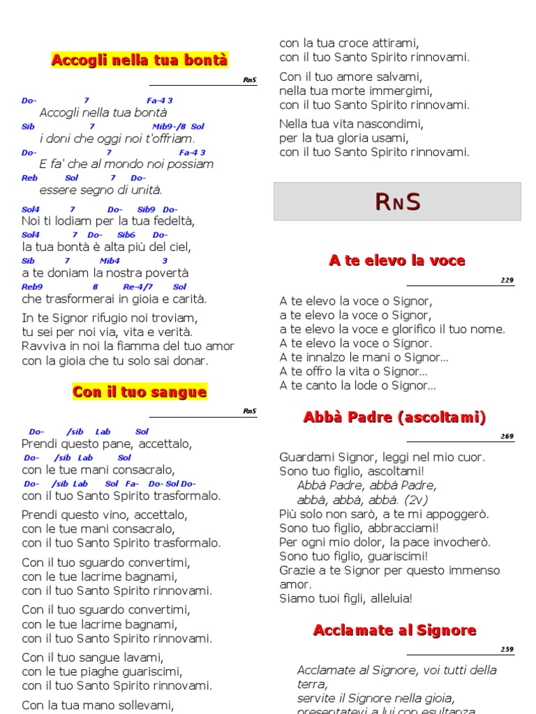 Canto Rns Lode Al Nome Tuo Iotibenedico Info
