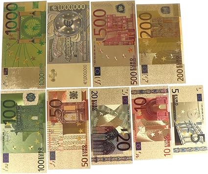 Amazon Com Lwestine 7pcs Gold Foil Banknotes Currency Crafts 5 10 50 100 0 500 Eur Banknotes In 24k Gold Fake Paper Money For Collection Euro Banknote Sets Audi Arabia Banknote Novelty Collection Gift Toys Games