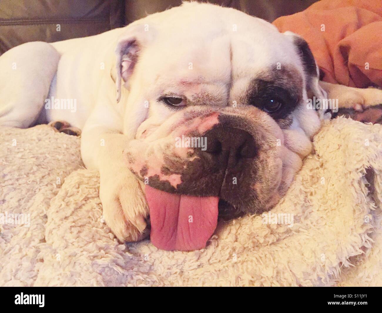 Bulldog Inglese Cane Stanco Enorme Lingua Foto Stock Alamy