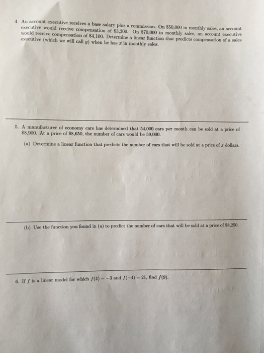 Solved An Account Executive Receives A Base Salary Plus A Chegg Com