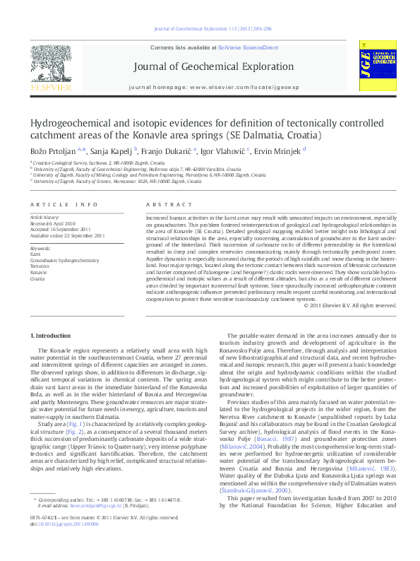 Pdf Hydrogeochemical And Isotopic Evidences For Definition Of Tectonically Controlled Catchment Areas Of The Konavle Area Springs Se Dalmatia Croatia Bozo Prtoljan Academia Edu