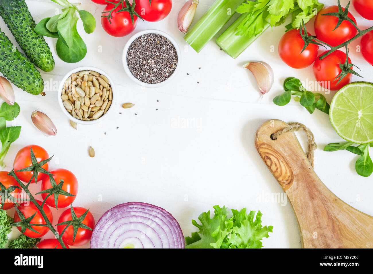Vista Superiore Della Verdura Fresca Su Sfondo Bianco Sana E Cibo Organico Telaio Lay Piatto Foto Stock Alamy