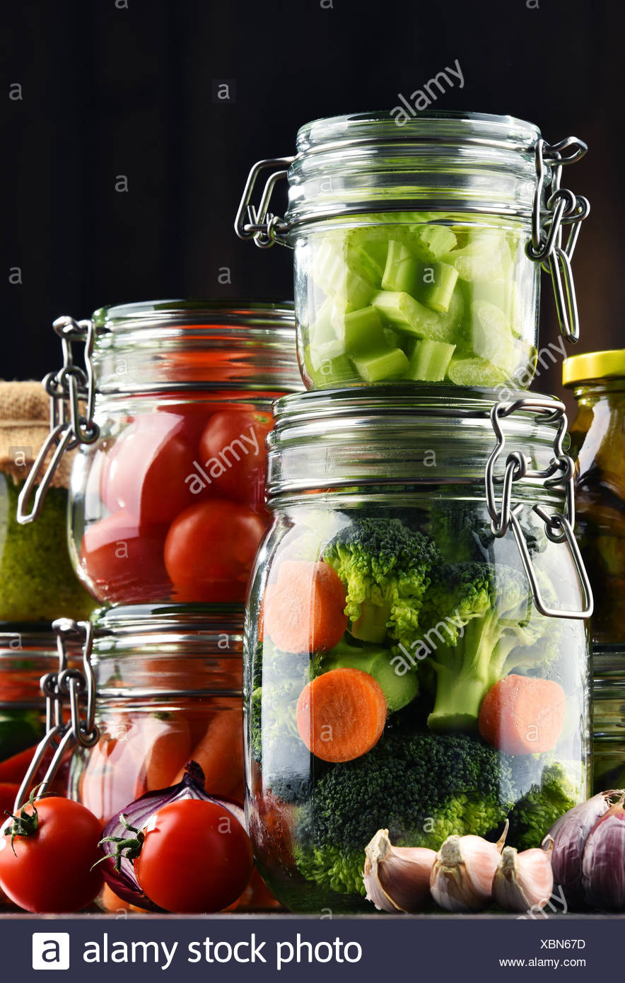 I Vasetti Con Marinata Di Cibo Organico E Verdure Crude Foto Stock Alamy