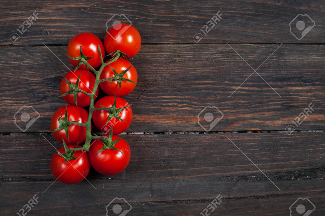 Immagini Stock Pomodori Di Ciliegia Freschi Su Sfondo Di Legno Cibo Organico Image