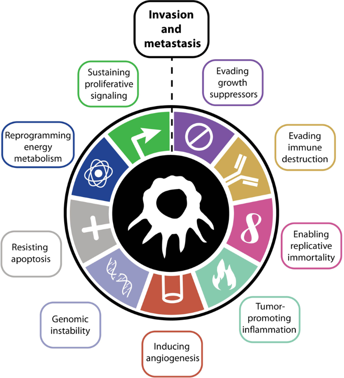 PDF Cancer is not just a lump of cells that divide, invade, and spread randomly, but rather a multilayered precisely tuned process that requires the Find, read and cite all the research. The ability to invade and metastasize distant sites is a key hallmark of cancer progression and possibly one of the most complicated and least understood hallmarks so far s Cancer Cancer Stem Cells Cell Signalling EMT Hallmarks of Cancer Macrophages Metastasis Next story Mutations Are Inevitable. Scientists have identified universal pillars or traits of human malignancy that allow it to grow and spread Collectively, these are called the “hallmarks” of cancer, and therapeutically targeting them as many as possible can enhance conventional treatment and improve your chances for achieving remission and longterm survival.