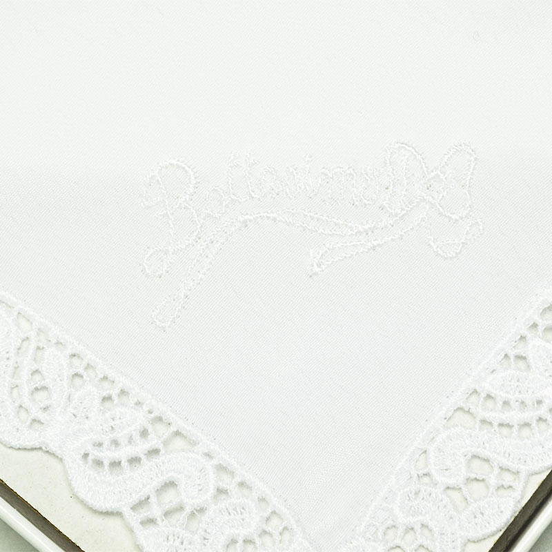 Fazzoletto Con Merletto Per Battesimo Con Ricamo Fiori E Stampa Piccole Marie
