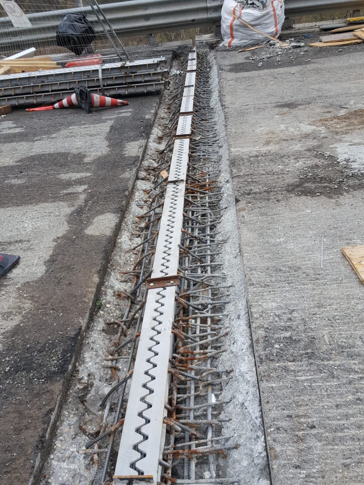 Il giunto è costituito da due profili metallici sagomati a T e aventi una configurazione a pettine complementare, la quale garantisce la compenetrazione tra i due elementi nelle fasi di dilatazione e contrazione del giunto.