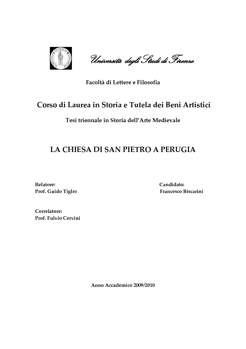 Universita Degli Studi Di Firenze Facolta Di Lettere E Filosofia Corso Di Laurea In Storia E Tutela Dei Beni Artistici Tesi Triennale In Storia Dell Arte Medievale La Chiesa Di San Pietro A