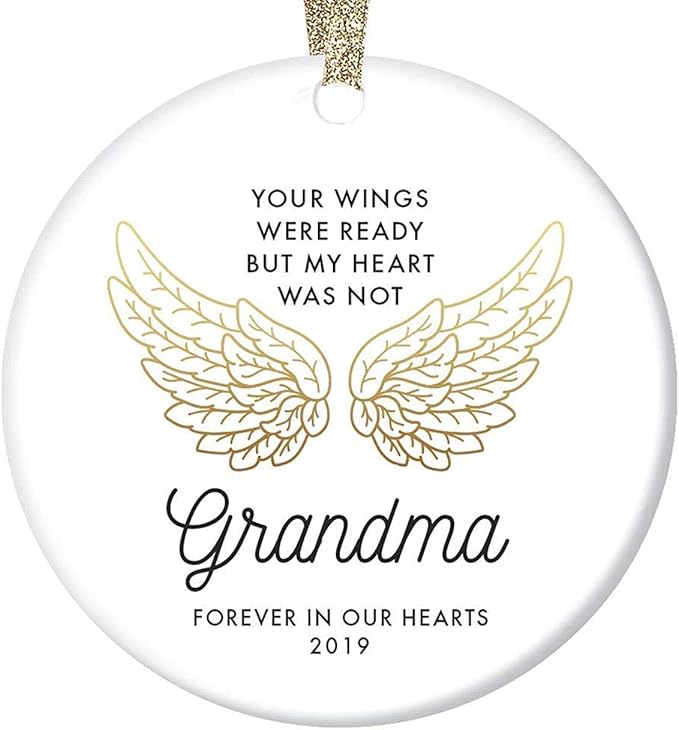 Jamirtyroy1 Ornamento Di Natale Da 7 6 Cm Per La Perdita Della Nonna Per La Memoria Della Nonna Idea Regalo Per Condoglianze Nonna Morte Anniversario Ricordo Graziose Ali D Angelo Dorate Amazon It Casa E Cucina