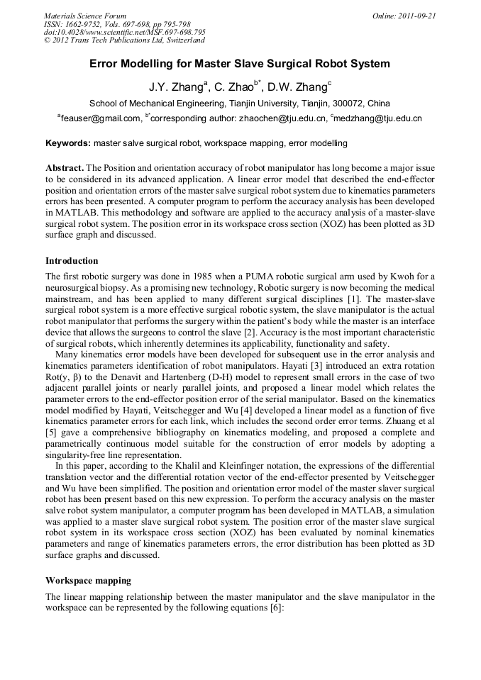 Error Modelling For Master Slave Surgical Robot System Scientific Net