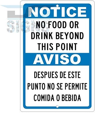 Bienternary Notice No Food Or Drink Allowed Oltre Questo Punto In Spagnolo Anche Aluminum Sign Metal Signs Cartelli Stradali Vintage Segni Di Latta Placche Decorative Plaque Amazon It Casa E Cucina
