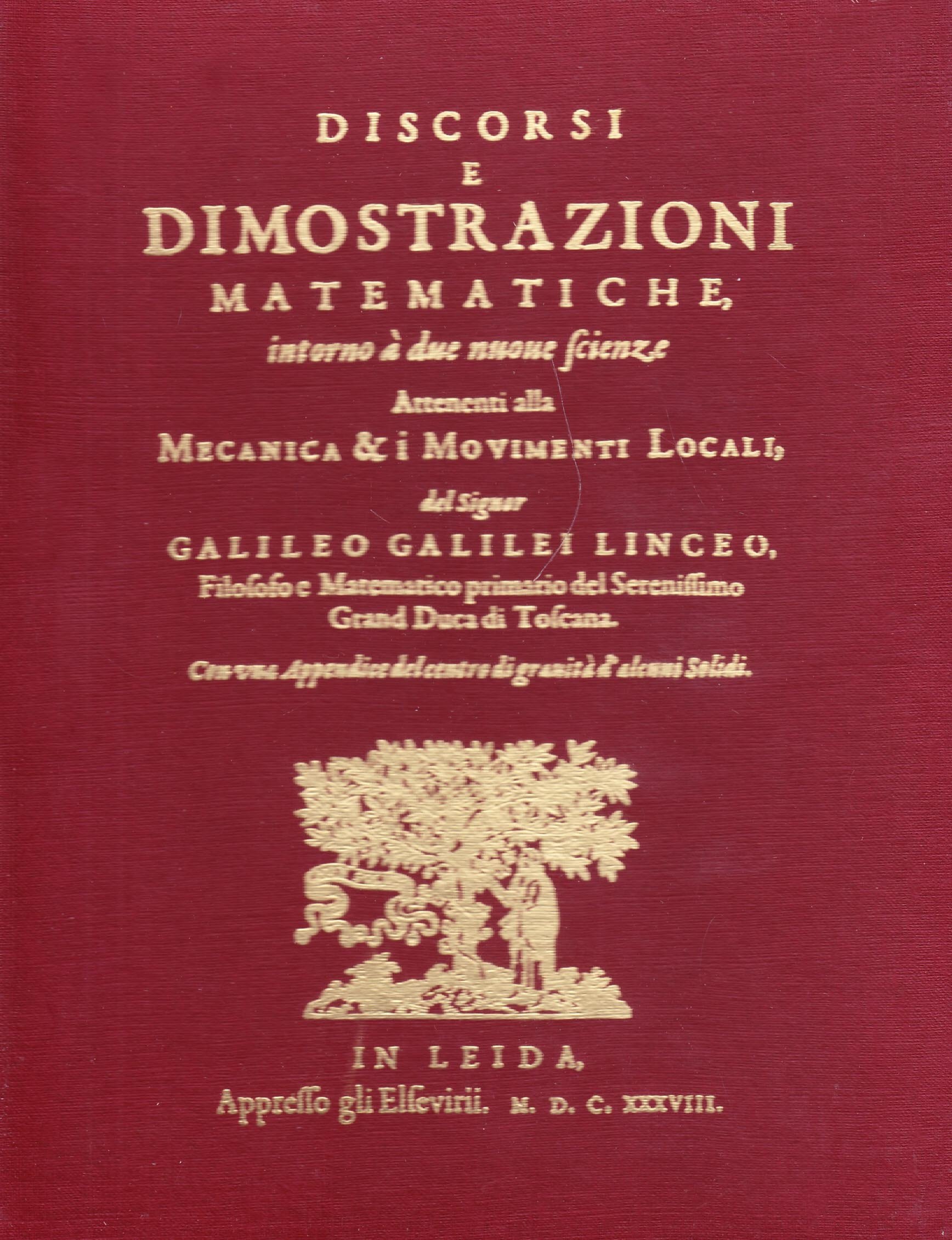 In his Discorsi e dimostrazioni matematiche intorno a due nuove scienze, Discourse and demonstrations on two new sciences published in Leiden, Holland, where the vetoes of the Inquisition were powerless, Galileo summarized all of the knowledge he had acquired in a lifetime The two new sciences concerned the structure of matter and its. This modern era that I think I have a case it is. Discorsi e dimostrazioni matematiche Dates / Origin Date Issued 1638 Place In Leida Publisher Appresso gli Elsevirii Library locations Rare Book Division Shelf locator *KB 1638 (Galilei, G Discorsi e dimostrazioni matematiche) Topics Mathematics mechanics Genres Illustrations Diagrams Notes.