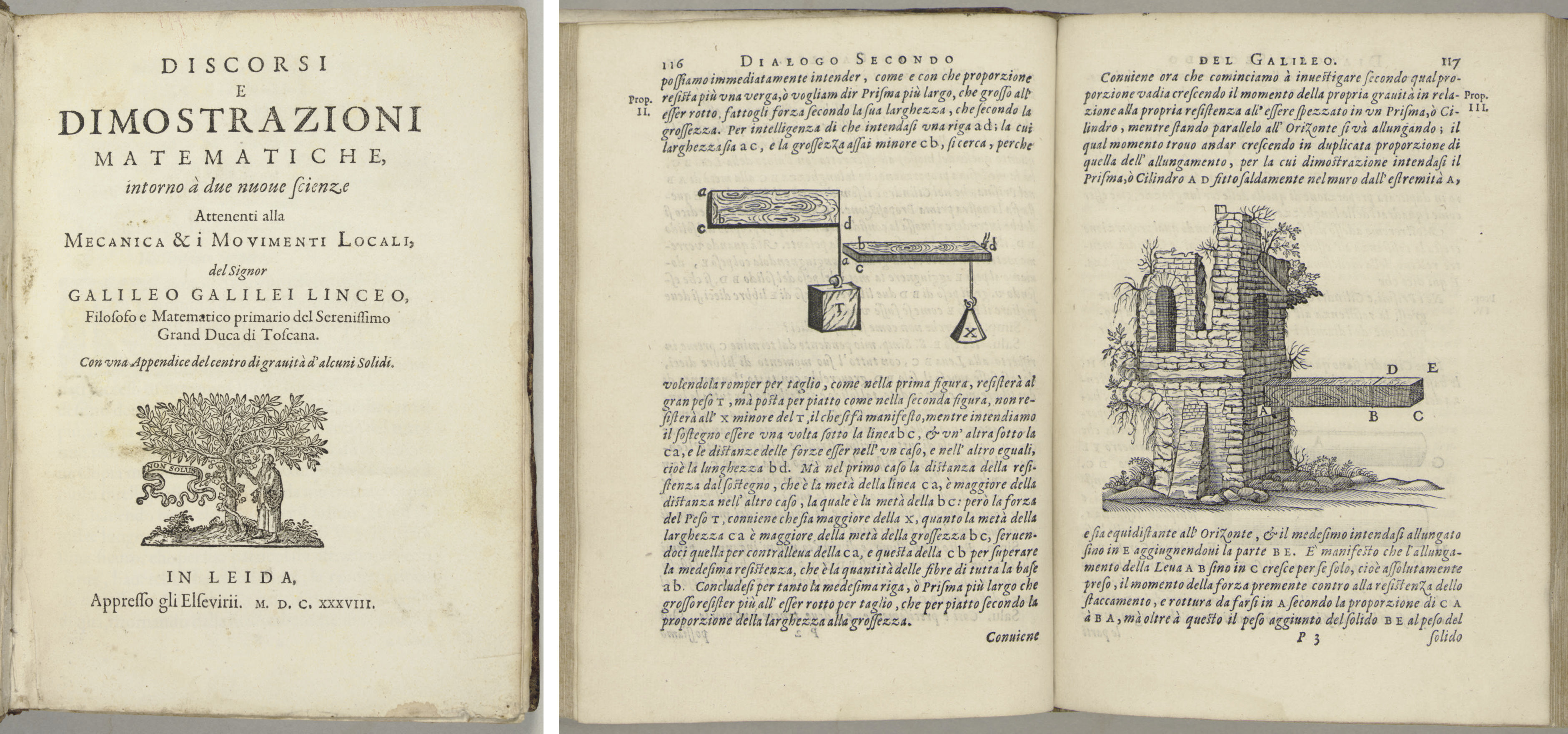 With device showing man picking fruit from tree marked 'non Solus' Related Names Galilei, Galileo, Date Created Published published 1638 Notes Title. Un ringraziamento ad Autoscuola DALLA' ALLAE' per averci ospitati!. Discorsi e Dimostrazioni Matematiche, intorno à due nuove scienze Attenenti all mechanica & i movimenti locali con une appendice del centro di gravita à d’alcuni solidi 4to 190 x 137 cm, (4) ff, 306 recte 314 pp, (6) pp, with numerous woodcut diagrams and illustrations in text.