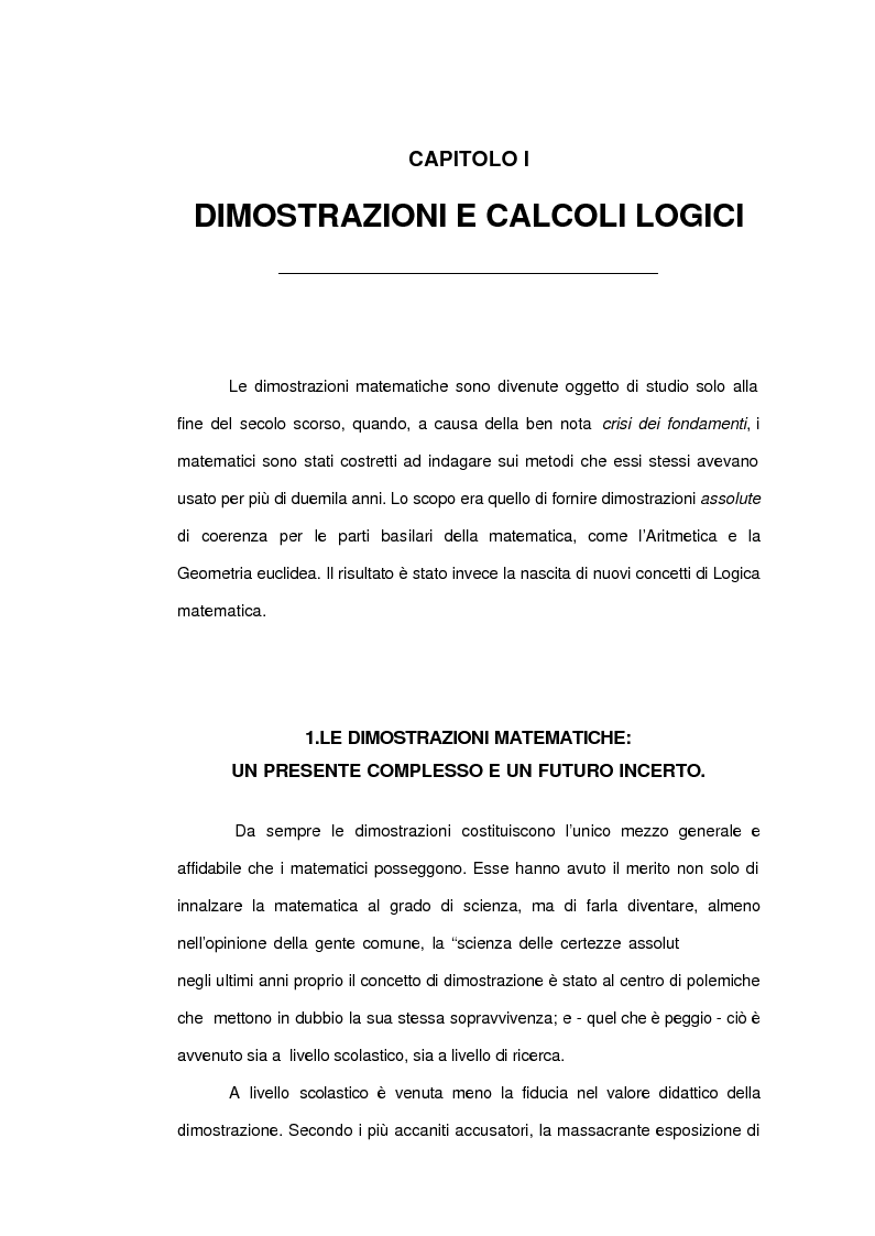 Capitolo I Dimostrazioni E Calcoli Logici Le Dimostrazioni Matematiche Sono Divenute Oggetto Di Studio Solo Alla Fine Del Secolo Scorso Tesionline