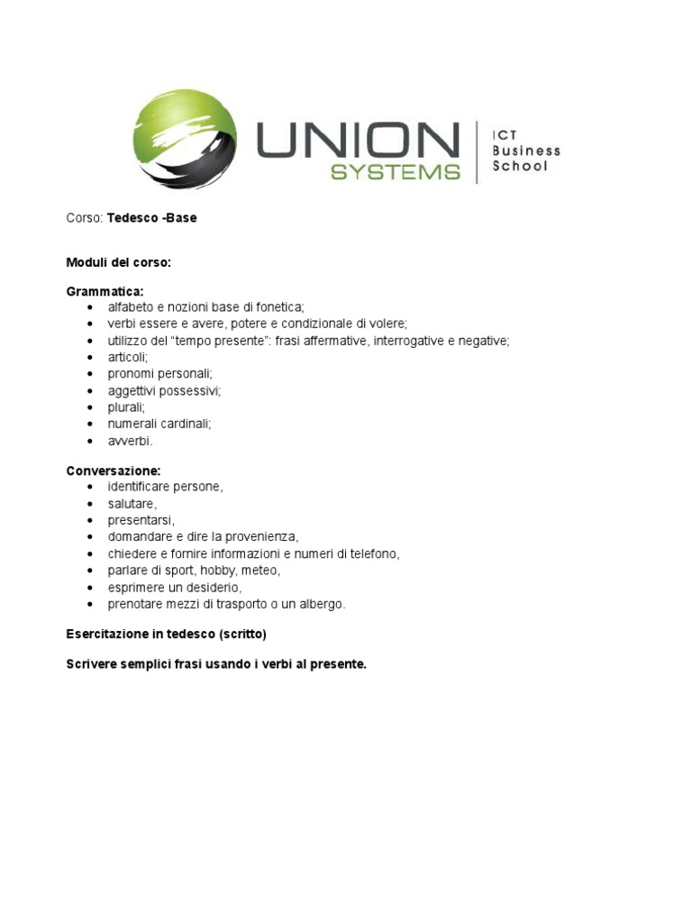 Corso Base Di Tedesco A P S Tavola Rotonda