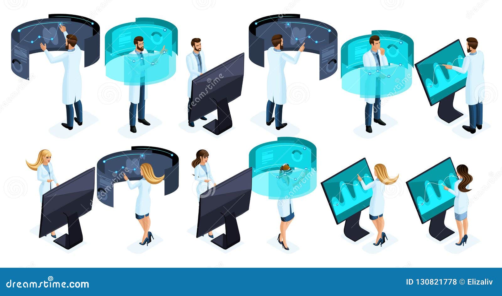 Isometry Is A Large Set Of Doctors Using Modern Technologies Of The Private Clinic A Virtual Screen A Large Tablet Stock Vector Illustration Of Network Equipment