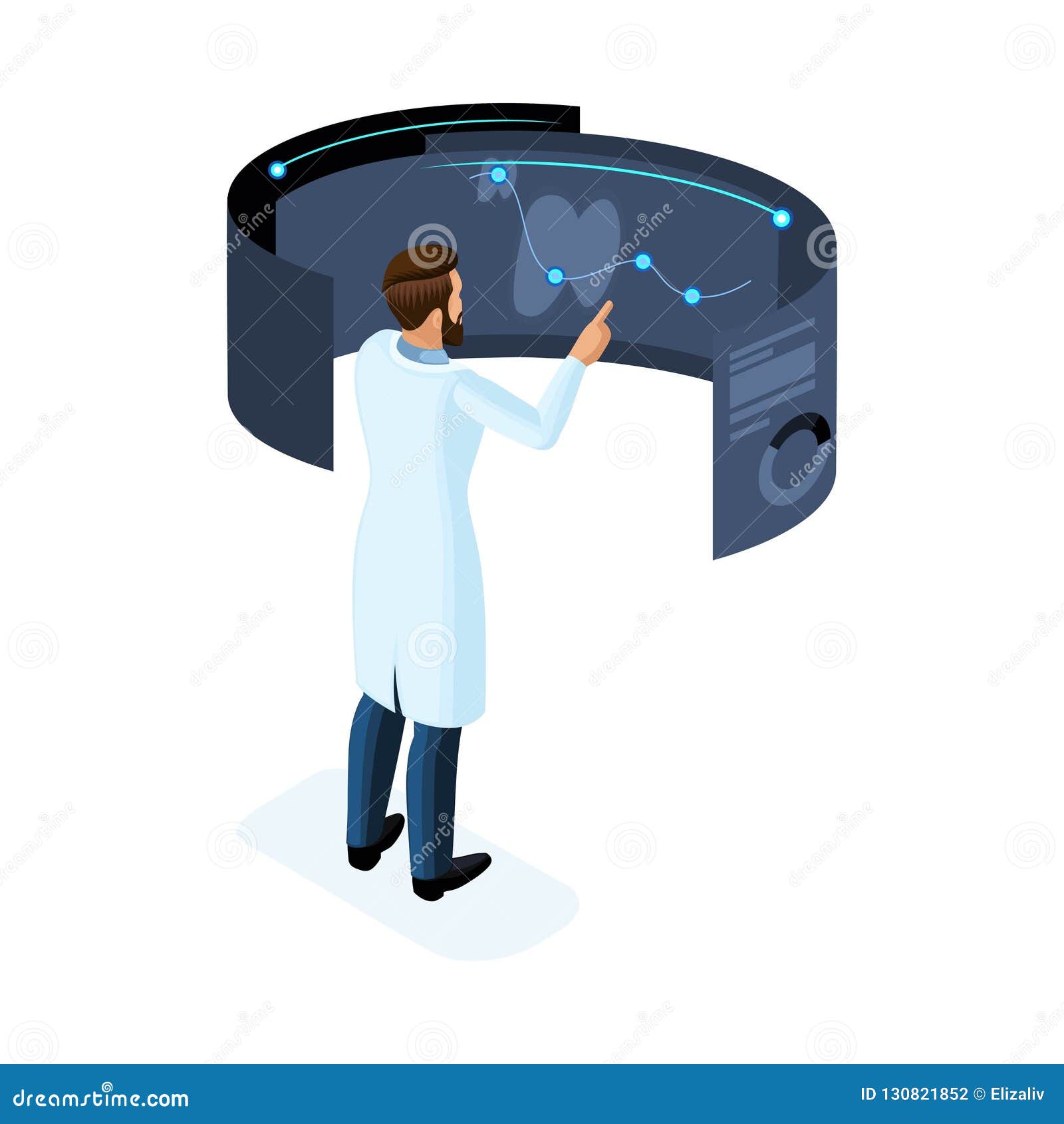 Isometry Of A Private Clinic Worker Uses Modern Technology Virtual Screen Large Tablet Modern Data Storage Stock Vector Illustration Of Medicine Equipment