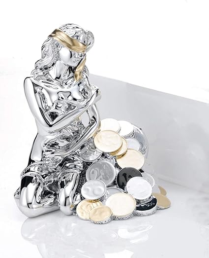 Albalu Italia Dea Bendata Portafortuna Statua Con Soldi Color Oro E Argento Resina Argento Misura 14 5x14 5 Cm Idea Regalo Soprammobile Portafortuna Scatola Regalo In Omaggio Amazon It Casa E Cucina