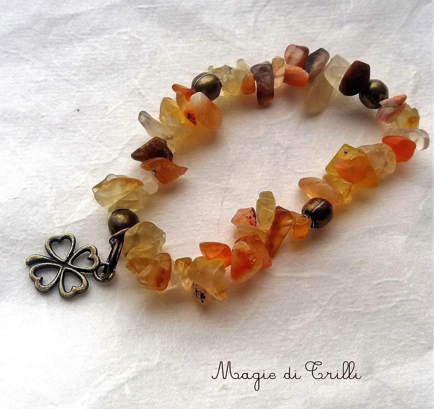 Magie Di Trilli Idea Regalo Braccialetto Artigianale Donna Con Chips Di Pietra Dura Corniola E Ciondolo Portafortuna Braccialetti