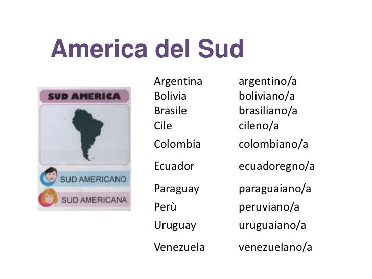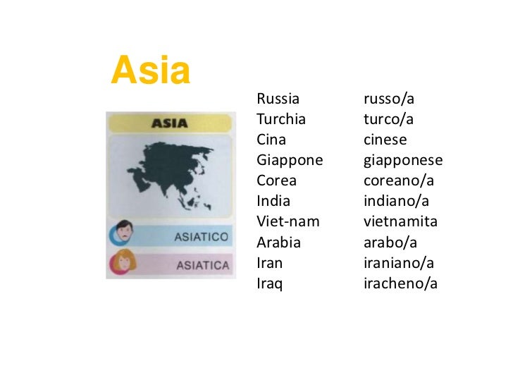 Paesi, nazionalità e abitanti in inglese Appunto di inglese che spiega come si scrivono i. Nazioni e nazionalità in italiano Novembre 13, 18 Gennaio 12, 21 Graziana Filomeno principiante Durante le nostre lezioni con studenti stranieri, abbiamo notato che molti, anche i più avanzati, fanno confusione con i nomi di alcuni Paesi e delle rispettive nazionalità!. L'attività ESL di oggi si concentra sull'apprendimento dei nomi dei paesi e delle loro nazionalità in inglese Ad esempio, se vieni dalla Germania, allora sei tedesco Se vieni dall'Italia, allora sei italiano.