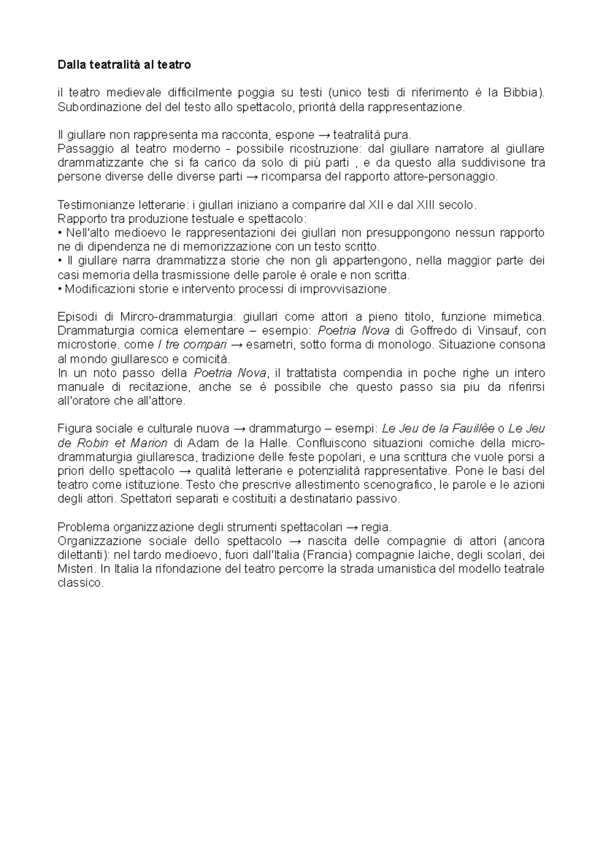 Teatralita Riassunto Teatro E Spettacolo Nel Medioevo Studocu