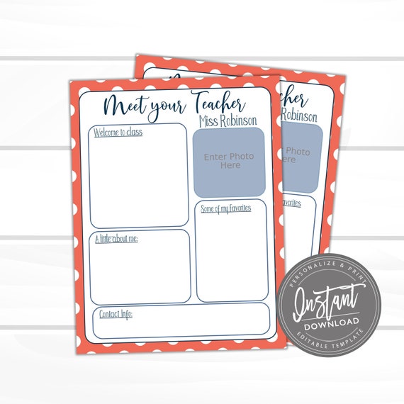 Editable Meet Your Teacher Printable Coral Dots Teacher Etsy