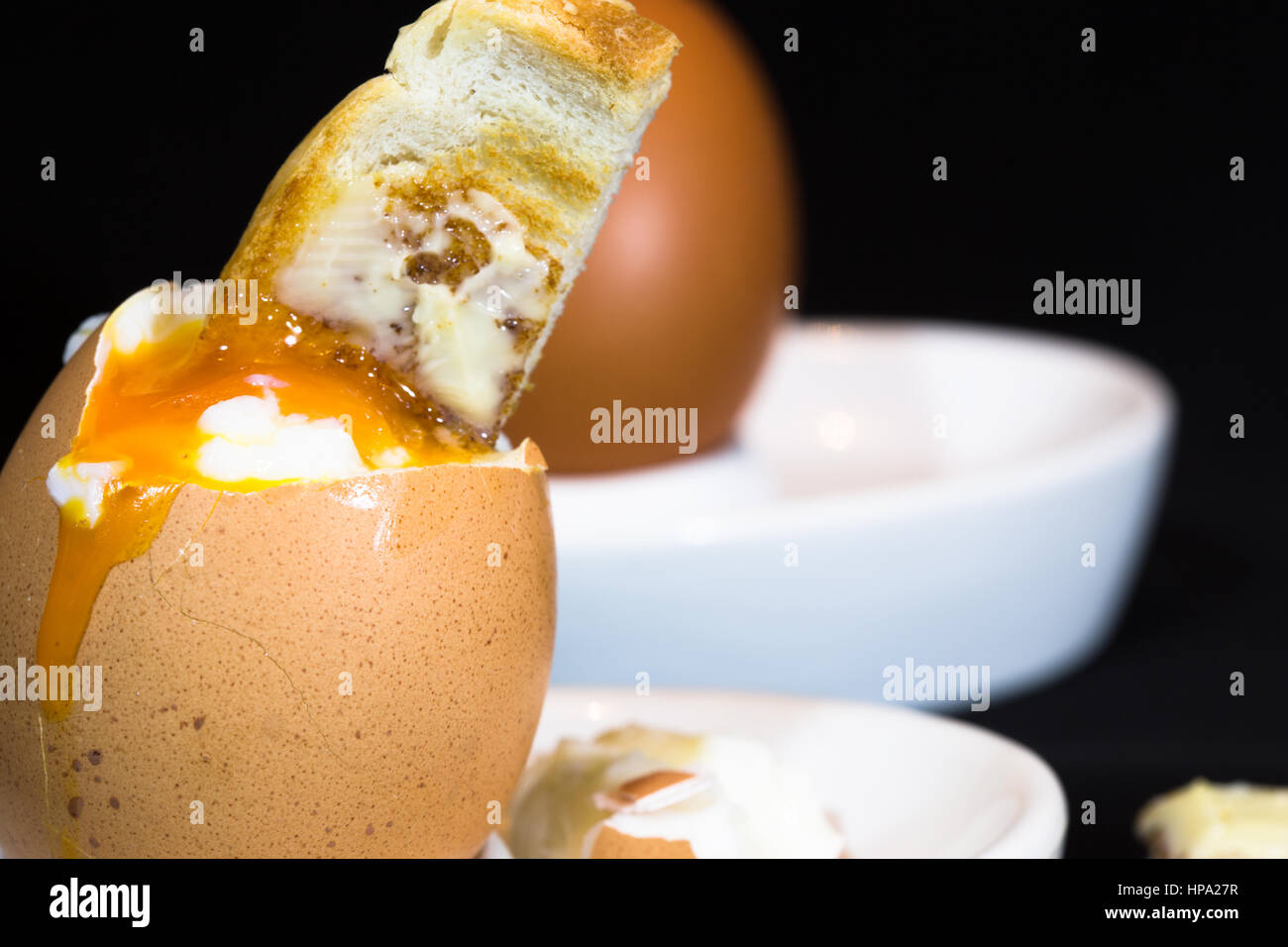 Una Chiusura Del Tradizionale Prima Colazione Inglese Piatto Di Uova Sode E Soldati Tostato Foto Stock Alamy