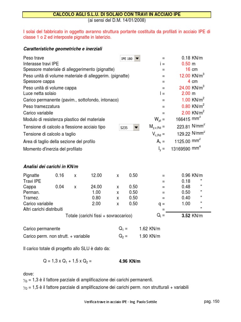 Verifica di resistenza Esempio x M Ed = 125 kNm y HE 240 A 2 Si calcola il momento resistente M Rd 3 Si verifica che M Ed < M Rd 1 Si determina la classe del profilato (la peggiore tra quella dell’anima e della flangia) M Ed (Acciaio S235). Modulo di elasticità longitudinale del calcestruzzo Poiché, dal punto di vista meramente geometrico, il modulo di Young rappresenta la pendenza della curva sforzideformazioni, il modulo E del calcestruzzo non è costante come per l'acciaio, poiché il calcestruzzo segue mediocremente la legge di Hooke Inoltre poiché lo scostamento dalla legge di Hooke è maggiore a trazione che a. Le seguenti schede di calcolo sono al servizio sia del progettista che si avvicina alla progettazione di strutture in acciaio per la prima volta, sia del professionista maggiormente esperto in soluzioni in acciaio che cerca uno strumento veloce e valido per effettuare una semplice verifica per un preventivo e/o un progetto di massima.