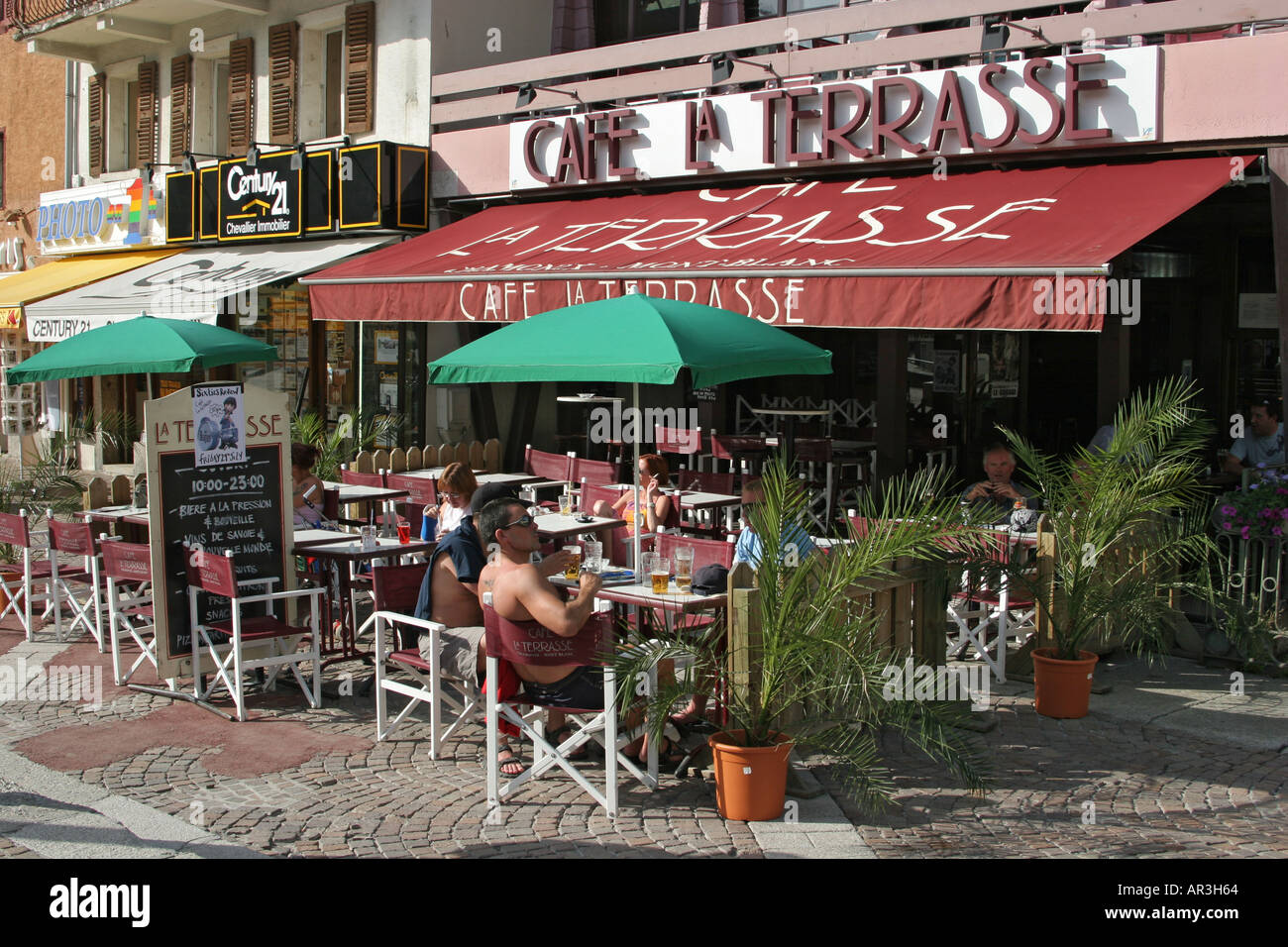 Cafe La Terrasse In Chamonix Stock Photo Alamy