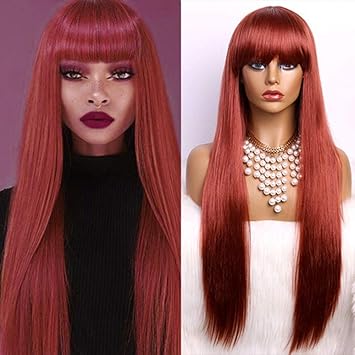 Amazon Com Eewigs Orange Red Straight Hair Replacement Wigs For Fashion Women Heat Resistant Synthetic None Lace Wigs With Bangs Beauty