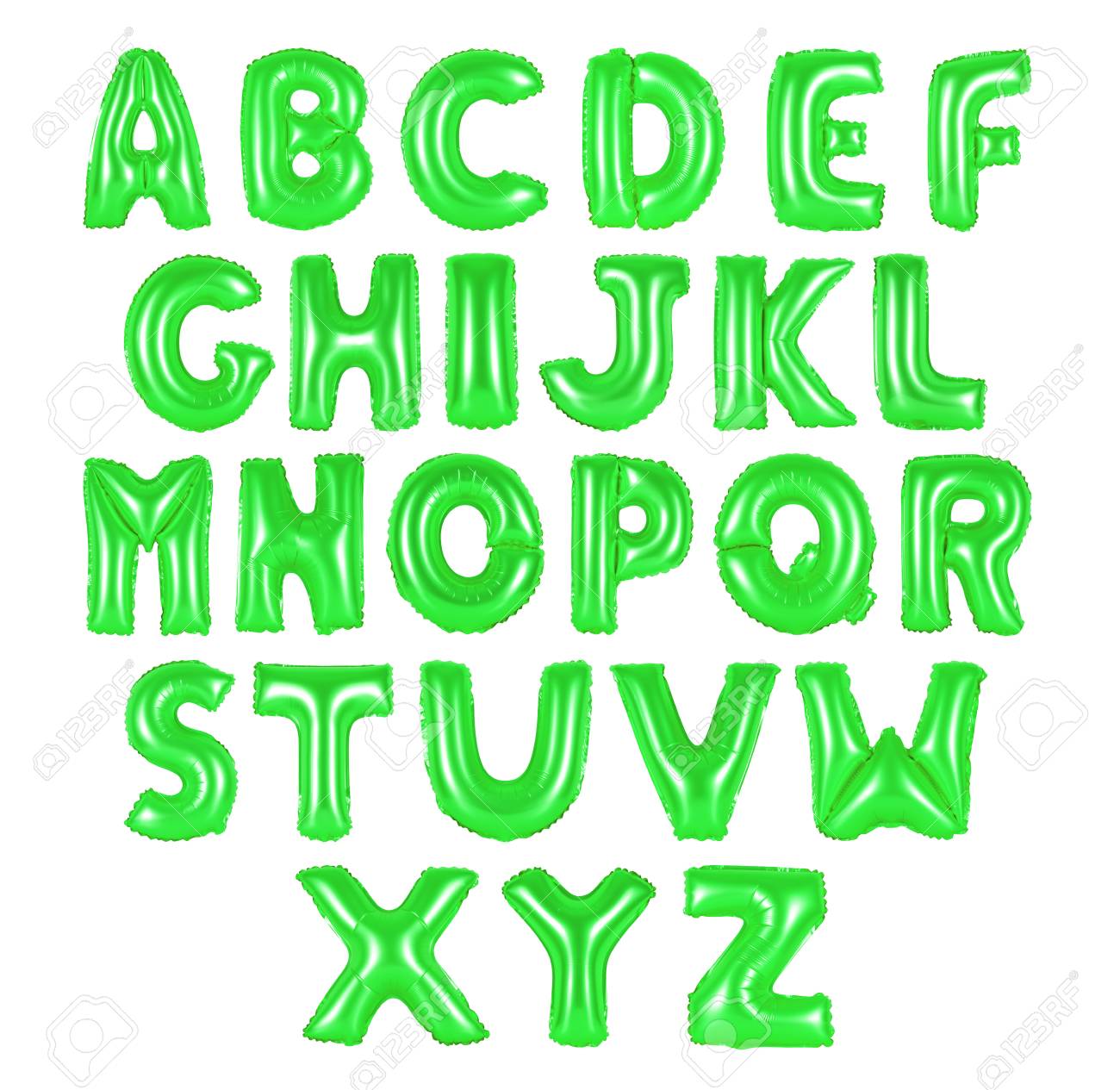 English Alphabet From Green Color Balloons On A White Background Stock Photo Picture And Royalty Free Image Image