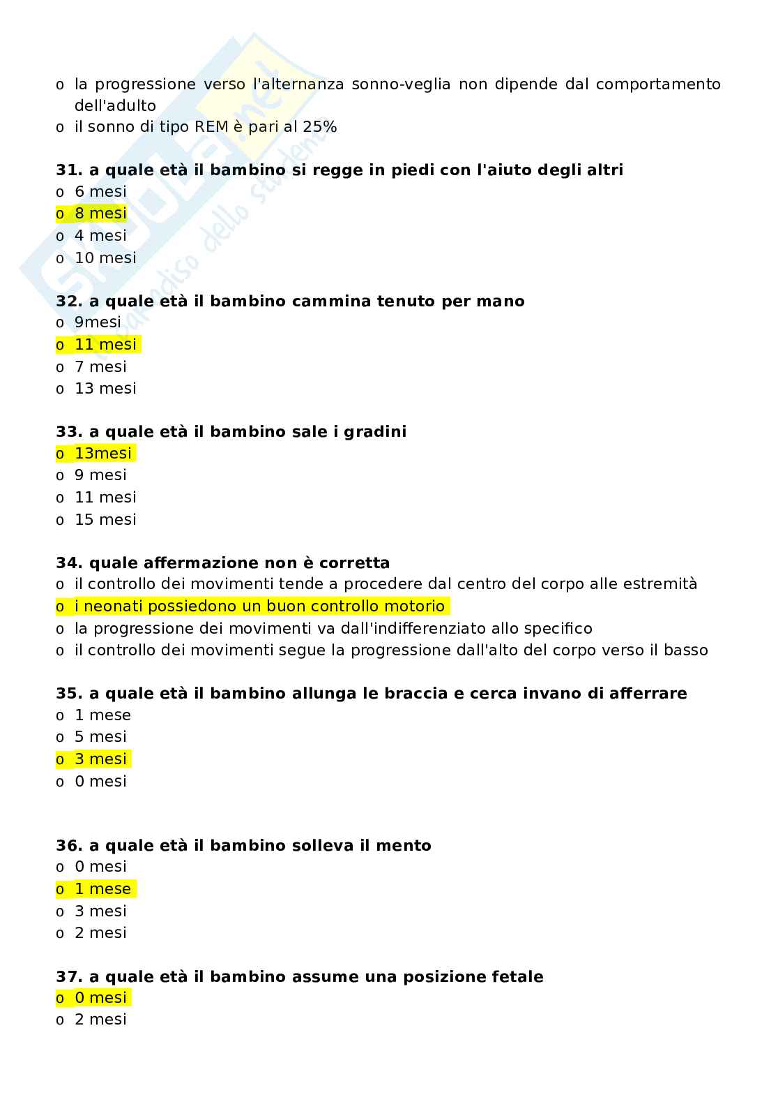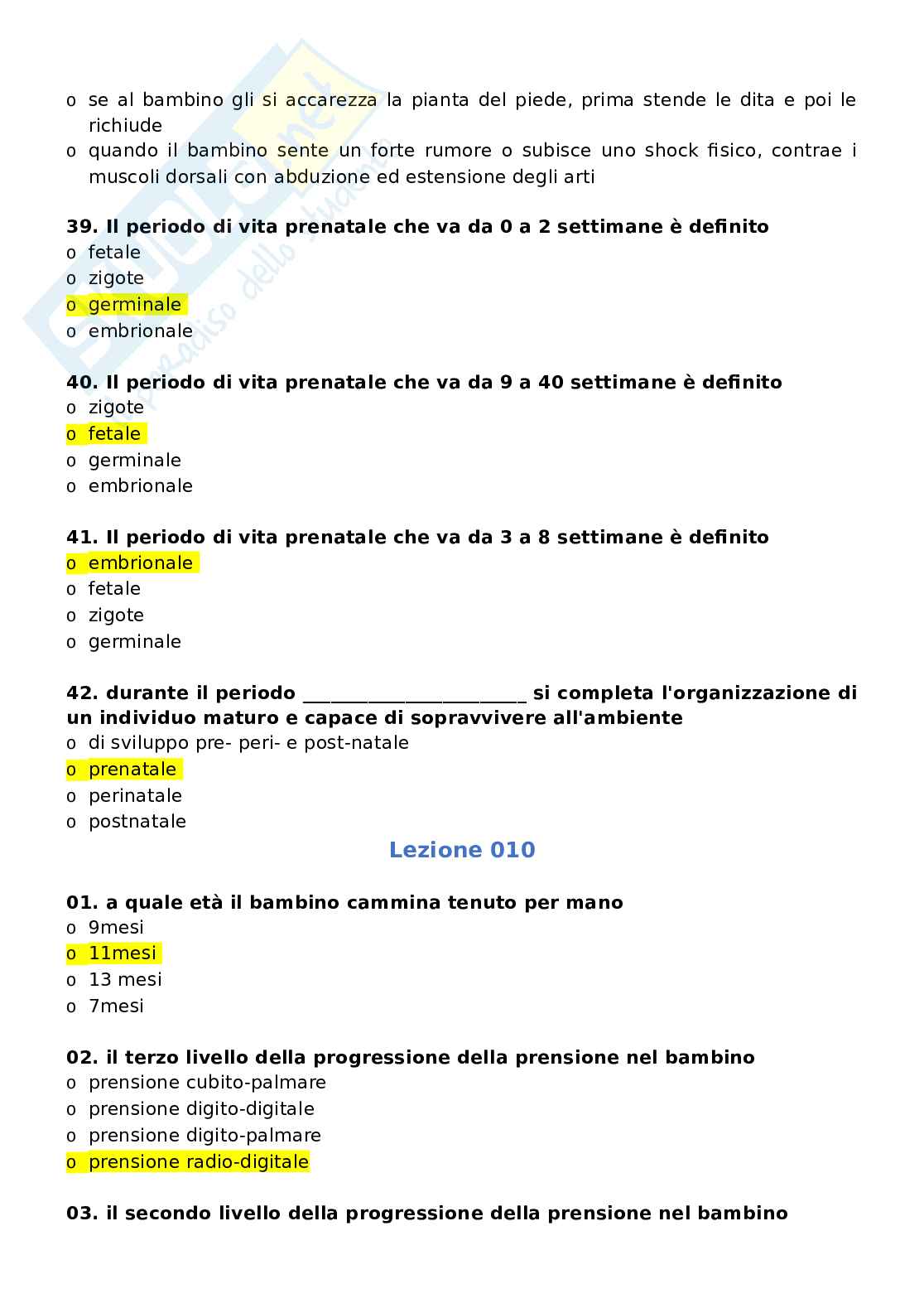 Paniere Con Risposte Chiuse Di Psicologia Del Ciclo Di Vita Attivita Motorie E Sportive