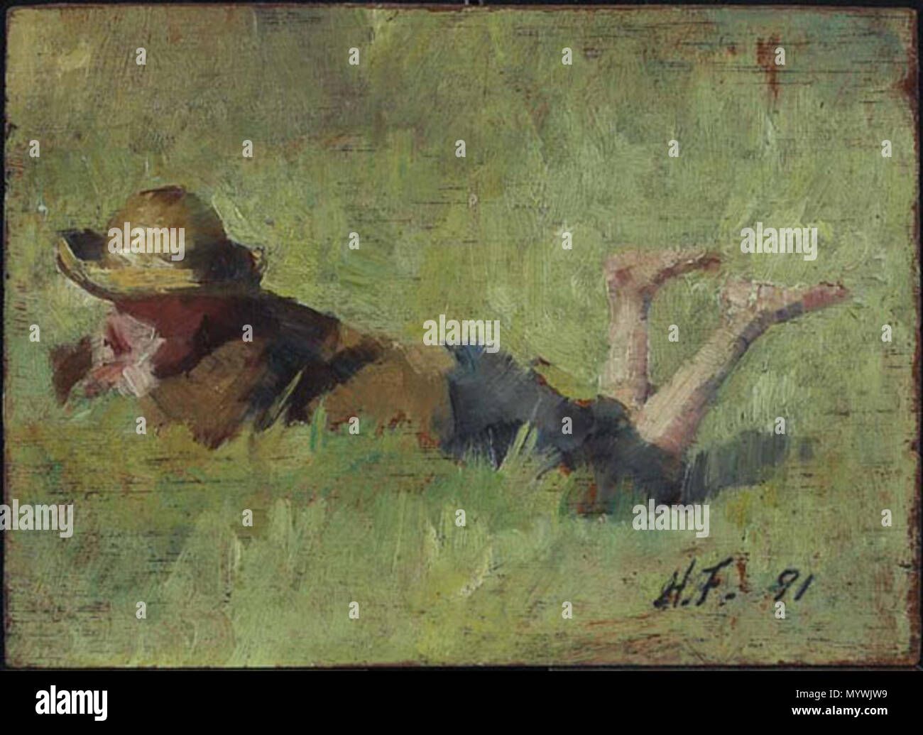 Inglese Boy Giacente In Erba 10 Un Ragazzo Giace Sul Suo Stomaco Nell Erba Indossa Un