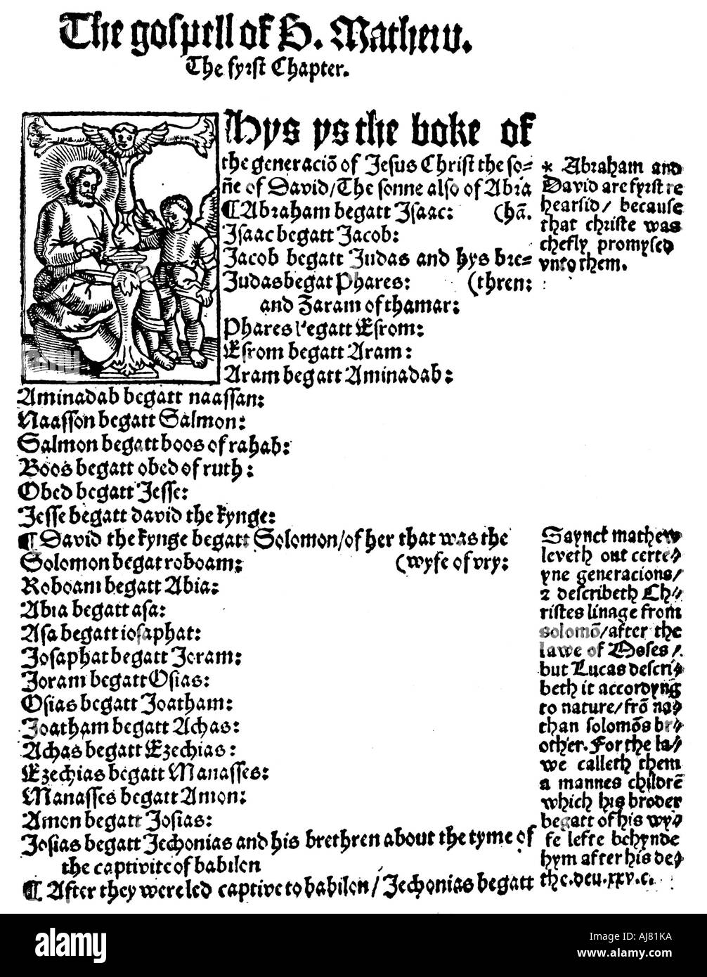 La Prima Pagina Del Vangelo Di Matteo Da William Tyndale Inglese Del Nuovo Testamento 1525 Artista Sconosciuto Foto Stock Alamy