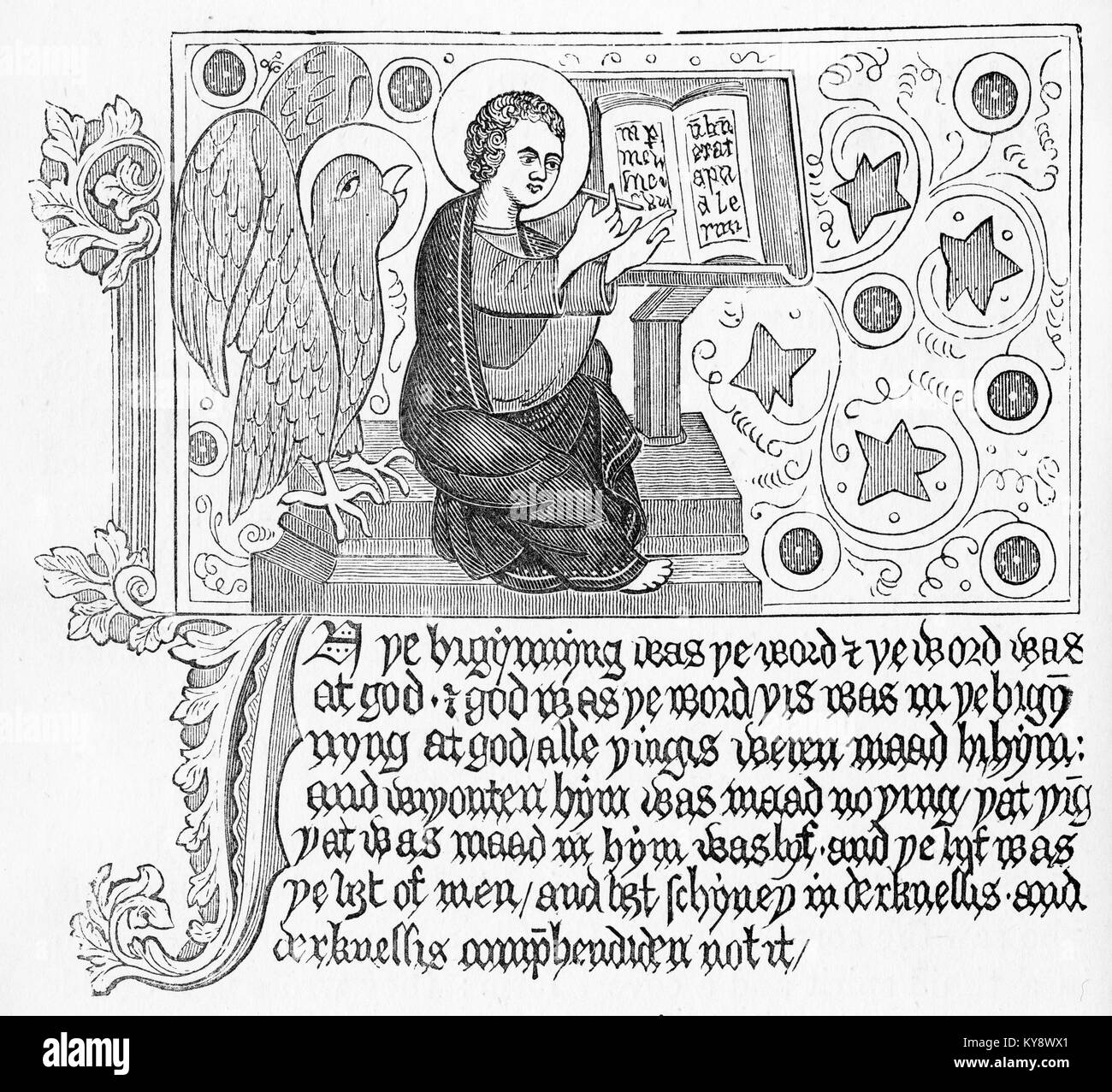 Incisione Di Una Pagina Del Vangelo Di Giovanni Fo Da Un Wycliffe La Bibbia Dalla Nostra Bibbia Inglese Da John Stoughton Circa 1900 Foto Stock Alamy