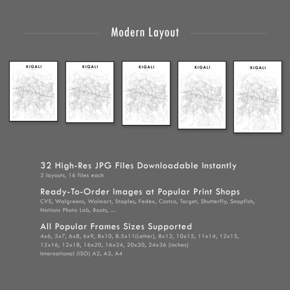 Kigali Rwanda Map Print Map Art Poster City Street Road Map Etsy