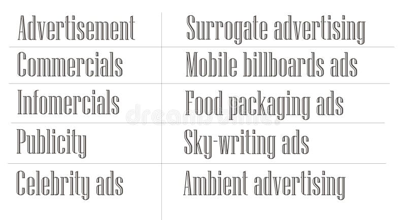 Termini Di Pubblicita In Inglese Illustrazione Di Stock Illustrazione Di Addestramento Commerciale