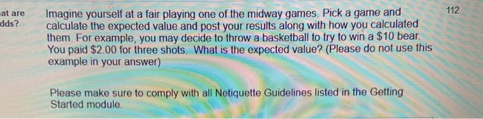 Solved 112 At Are Dds Imagine Yourself At A Fair Playing Chegg Com