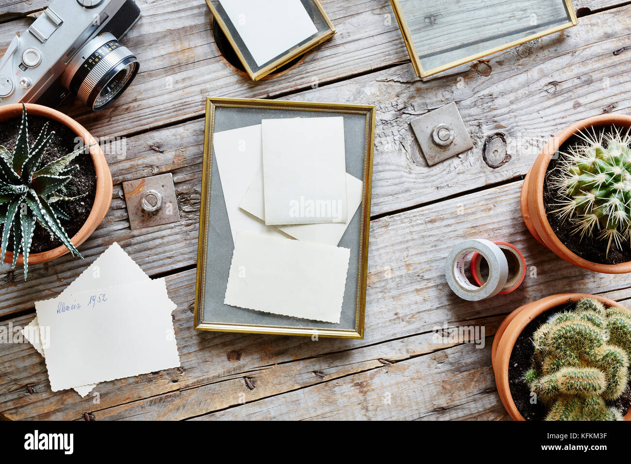 Creative Oldschool Area Di Lavoro Progettazione Industriale Cornici Foto E Cactus Foto Stock Alamy