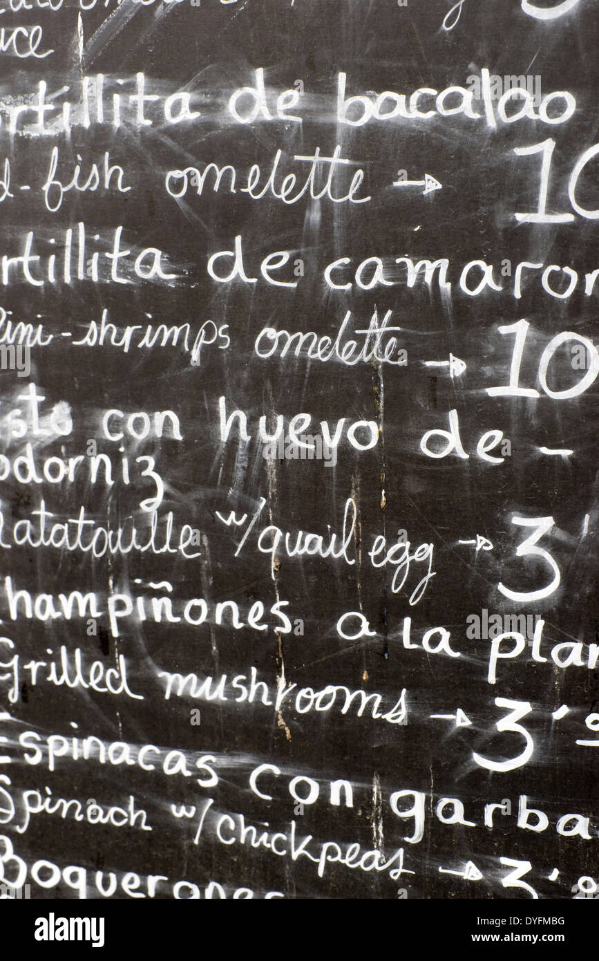 Primo Piano Di Un Poster Del Menu In Un Tipico Ristorante Spagnolo Sevilla Andalusia Spagna Foto Stock Alamy