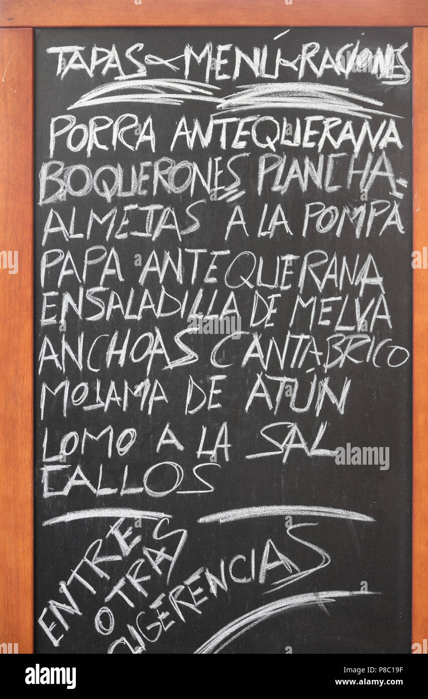 Menu Spagnolo Di Tapas A Antequera Andalusia Cucina Tipica Della Spagna Foto Stock Alamy
