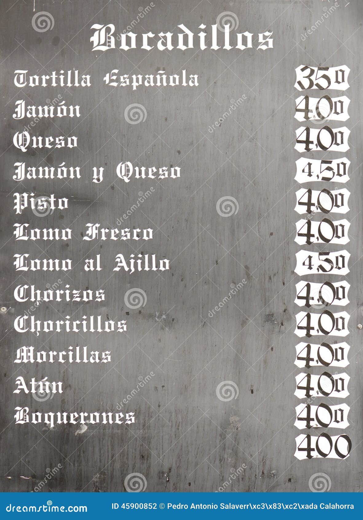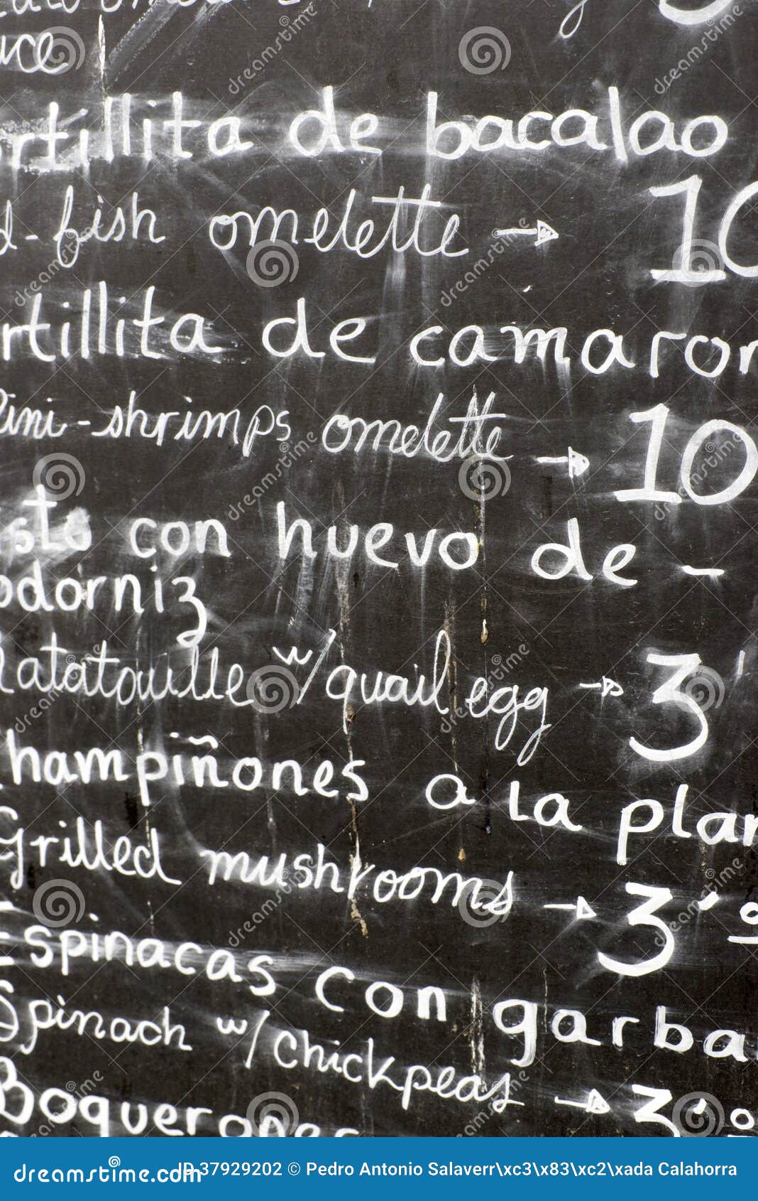 Immagini Stock Cartello Bianco Scritto A Mano Spagnolo Bianco In Parete Con Menu Tipici Piatti Di Cibo In Spagna Ristorante Come Panini Image
