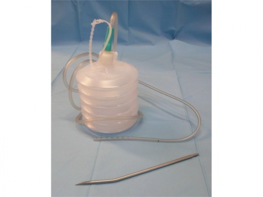 Nel caso di un drenaggio tubulare il capo distale può essere 'a caduta libera' e quindi collegato ad una sacca o a una bottiglia di raccolta sterile 'a sistema chiuso' se raccordato ad un apparecchio aspirante (secondo Redon) In quest'ultimo caso il drenaggio offre minori rischi di infezione Ricordiamo alcuni drenaggi particolari. Closed suction drainage devices are active drain systems that operate on the principle of creating a vacuum in a chamber that draws fluid from the body area through a fenestrated drain placed beneath the skinMost chambers are collapsible plastic canisters containing a spring or expansile mechanism that pushes the reservoir walls outward, to create a vacuum. PVC medicale, biocompatibili, tromboresistente Antipiegamento e si conformano facilmente al profilo anatomico dei tessuti garantendo elevate prestazioni di drenaggio I drenaggi Redon possiedono perforazione a spirale lunga 14 cm Tutti i drenaggi possiedono linea blu per identificazione radiografica Linee di profondità a 5 cm dall’ultimo.