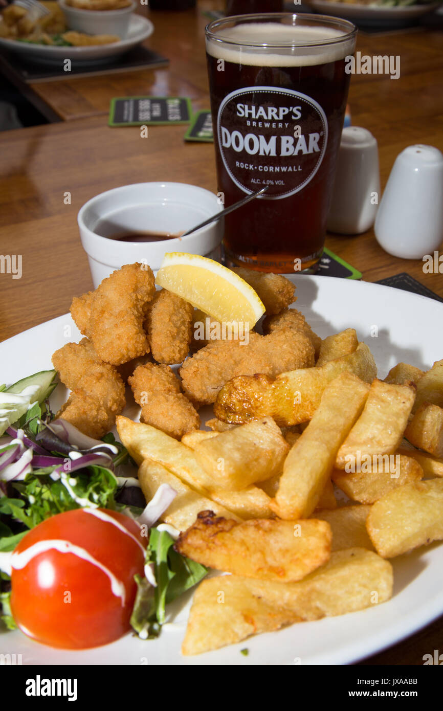 Un Pub Inglese Bar Ristorante Il Pranzo Dei Tradizionali Impanati Scampi Fritti Con Patatine Patatine Fritte Insalata Di Contorno E Una Pinta Di Birra Birra Foto Stock Alamy